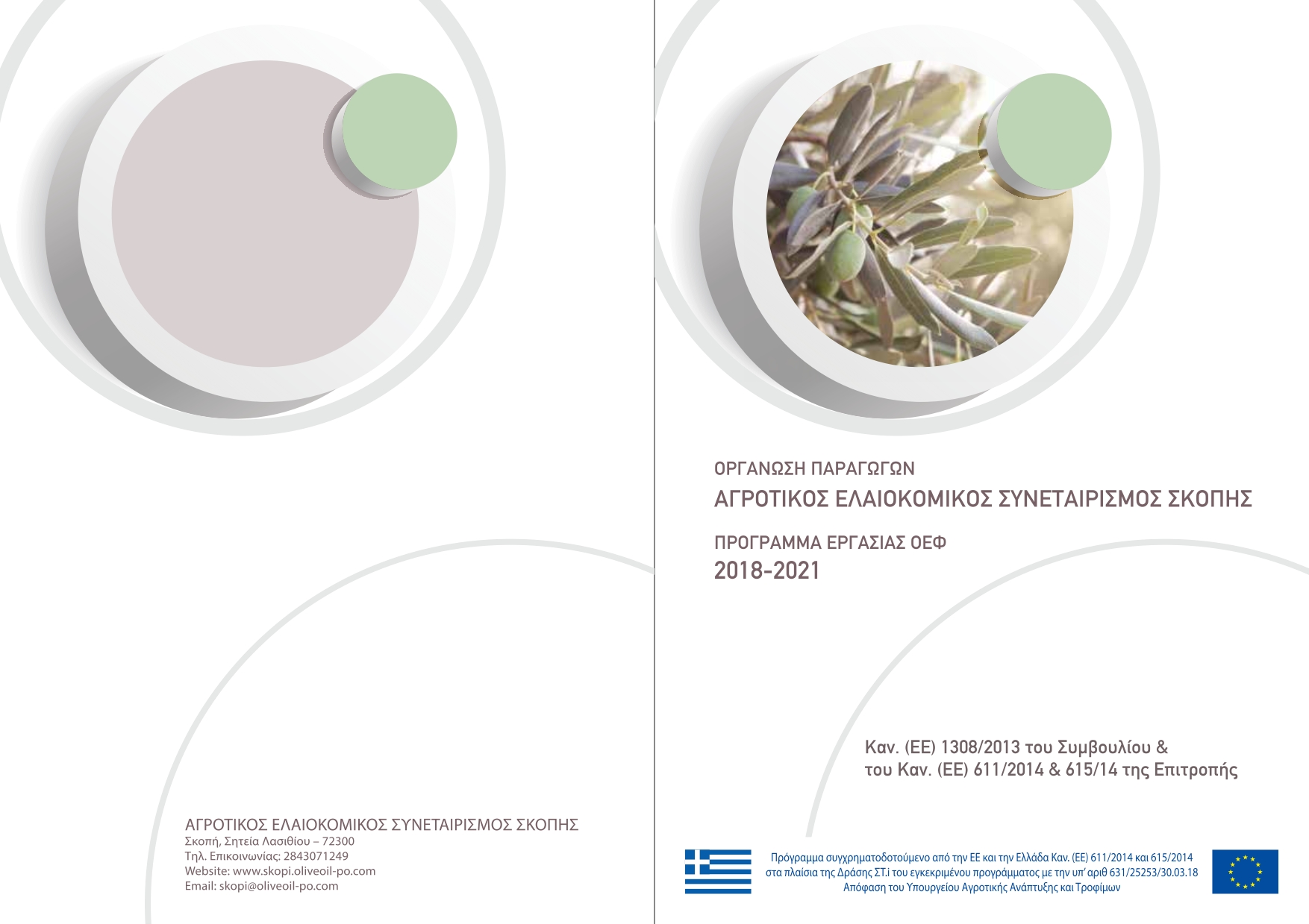 Οι εγκεκριμένες δραστηριότητες του προγράμματος της Ο.Ε.Φ. – Αγροτικός Ελαιοκομικός Συνεταιρισμός Σκοπής εντάσσονται στους ακόλουθους πέντε (5) τομείς δράσης που καθορίζονται από το Άρθρο 3 παράγραφος 1 του Κανονισμού (ΕΕ) αριθ. 611/2014 και αποτελούν επιλέξιμες δραστηριότητες για Ενωσιακή και Εθνική χρηματοδότηση.
